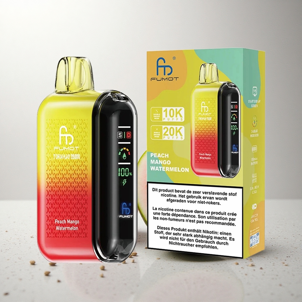 Fumot Tornado 20000 Puffs Perzik Mango Watermelon Dual Mesh Coil 20ml Smart Display